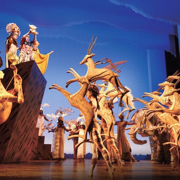 As the sun rises on the plains of the Serengeti, watch in awe as giraffes, gazelles and birds bring the story of Simba to life in a spectacle unlike any other.